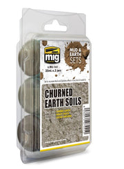 With this set you will have all necessary products to recreate Mud & Splashes effects for churned and turned earth terrain and weathering effects. Add the final touches of variable textures and colors to your model by mixing the 3 products to create the most realistic effects. Apply with a brush or tool, manipulate or remove with a clean brush moist with thinner. These are enamel base products, so you will have time to rework, blend, and adapt to your desired result before it dries. This set includes the following mud products: A.MIG-1702 TURNED EARTH A.MIG-1704 HEAVY EARTH A.MIG-1752 LOOSE GROUND