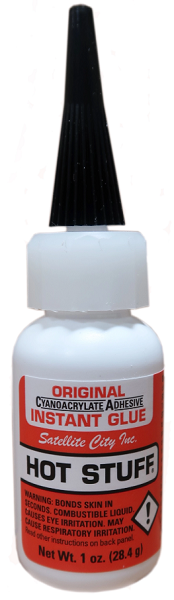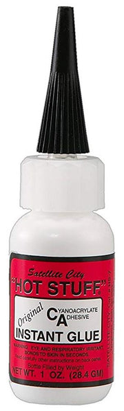 Hot Stuff Original is our thin CA glue with a viscosity (3cps) similar to water and no surface tension. When you have parts that fit exactly together, first get them in position, then run this instant glue along the crack, and it will wick right in. If you have tight-fitting joints of non-porous material, Hot Stuff thin CA glue will give you the best results as it will not create any extra space between the pieces, and since you get the parts aligned before applying this instant glue, you can be sure they will be perfectly in place when the glue cures.