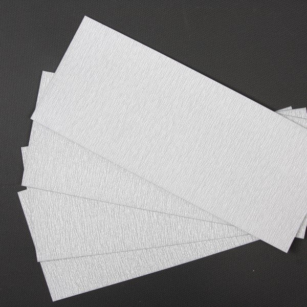 Finishing abrasives are a key item for modelers - from cleaning up join lines to filing down putty or preparing a surface for a final finish, their uses are myriad. The material used on these sheets discourages gumming up of the surface. It can be used for wet or dry sanding.
